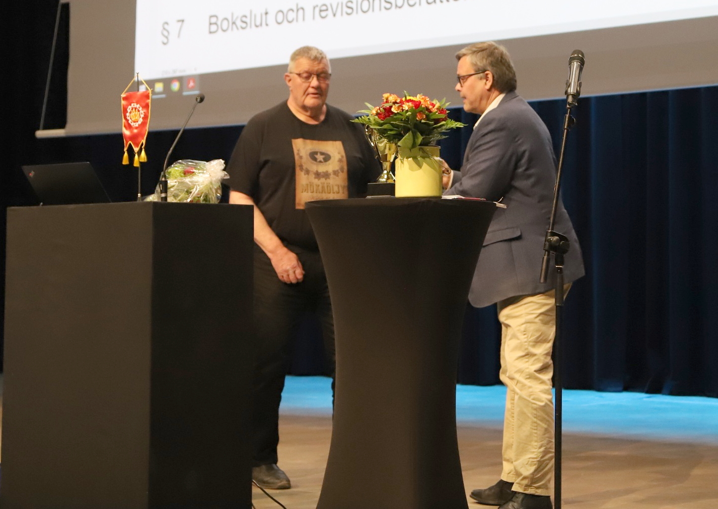 Årets brandkårist 2019 Leif Lindman får sin utmärkelse av förbundets ordförande Anders Norrback