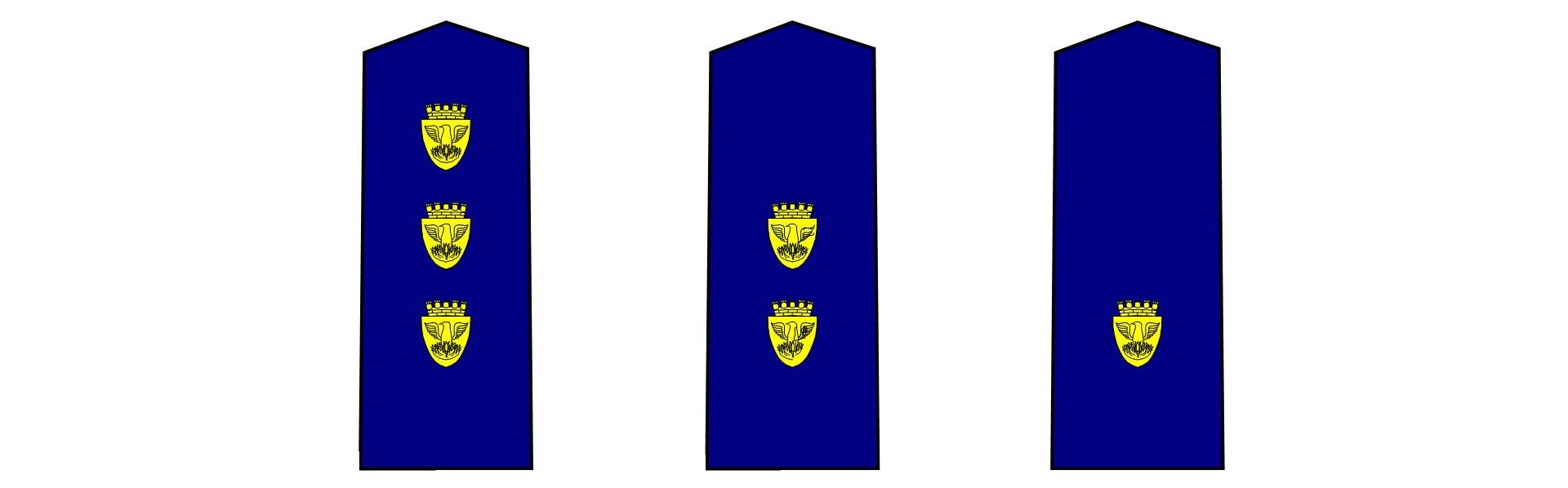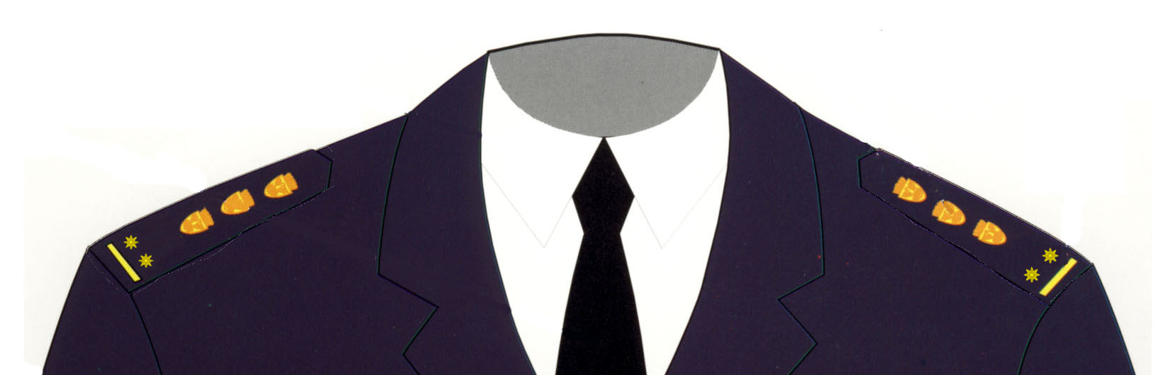Förbundets personal och ledande personer bär förbundets vapen på axelklaffarna.