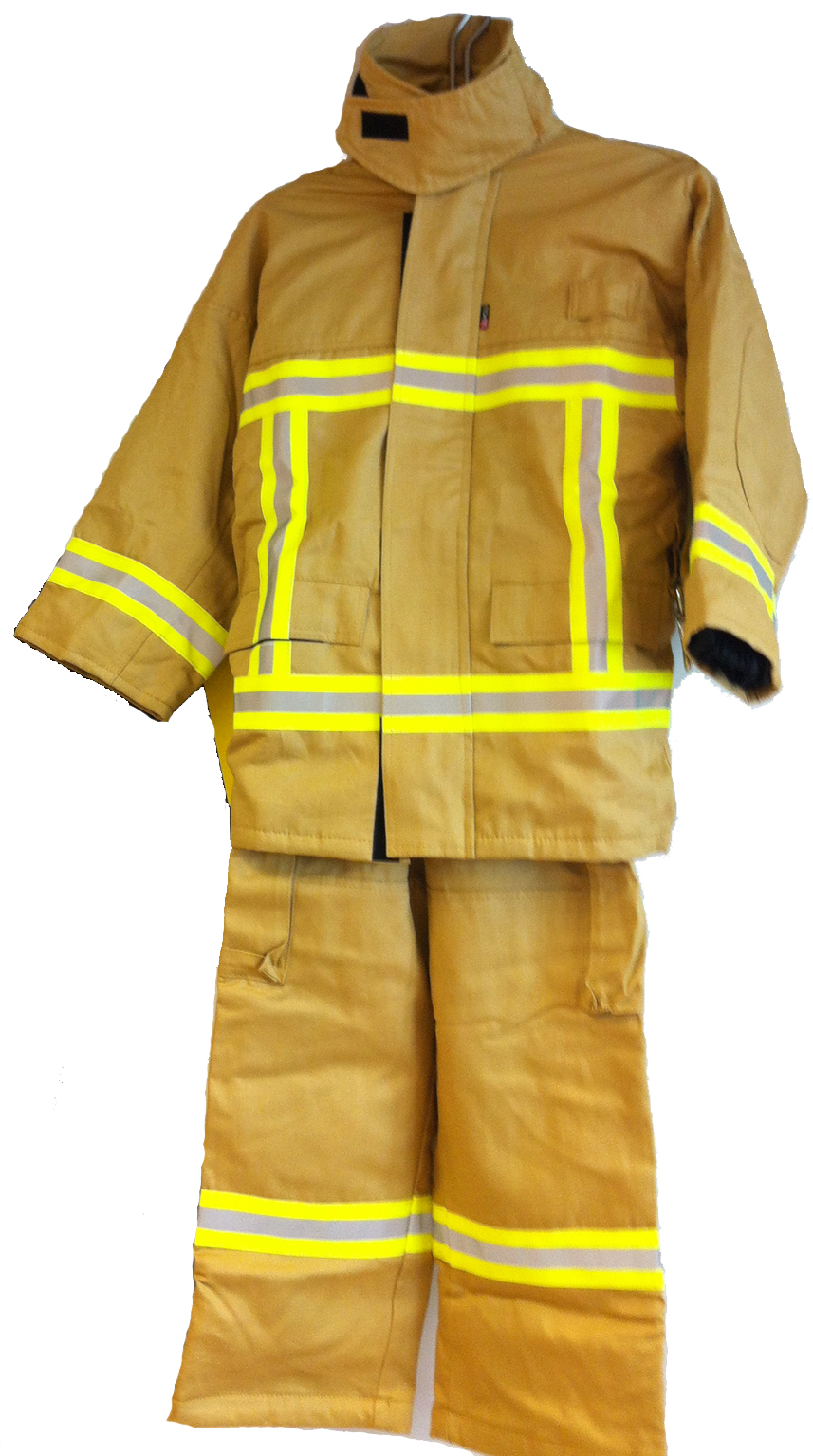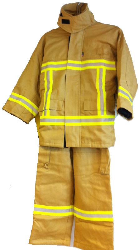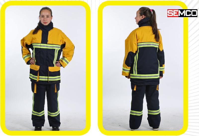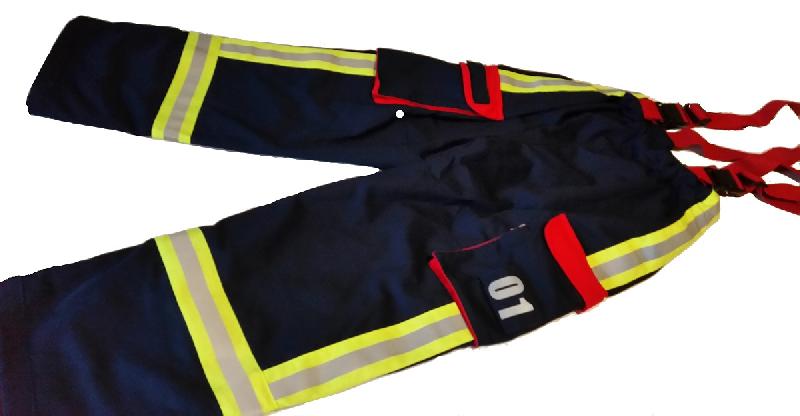 FSB saluför skyddshalare av modell Orion för brandkårsungdomarna. Skyddshalarna är tvådelade och består av byxor och rock.